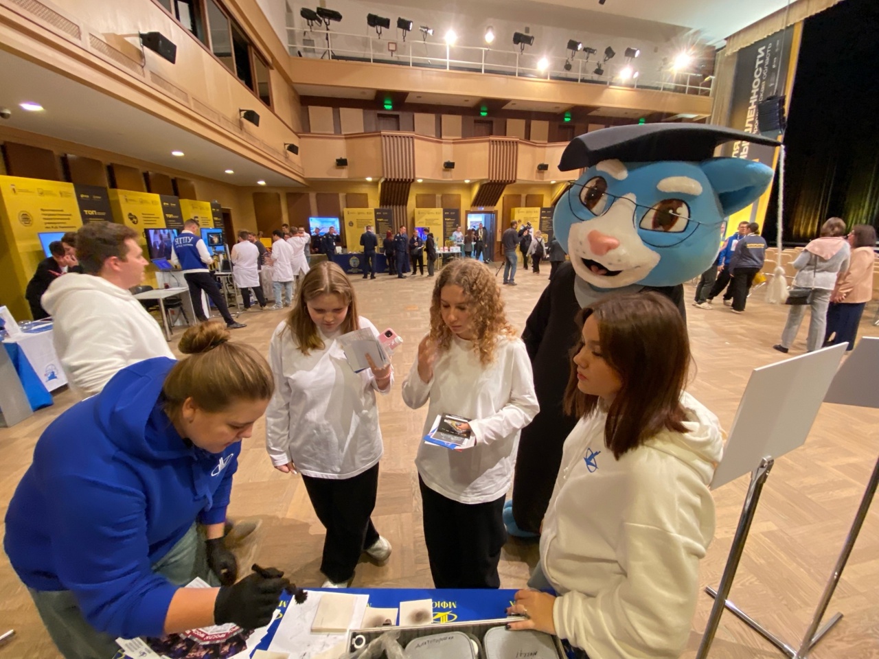 посетителей, которым студенты рассказывают про учебу и студенческую жизнь в нашем вузе!
