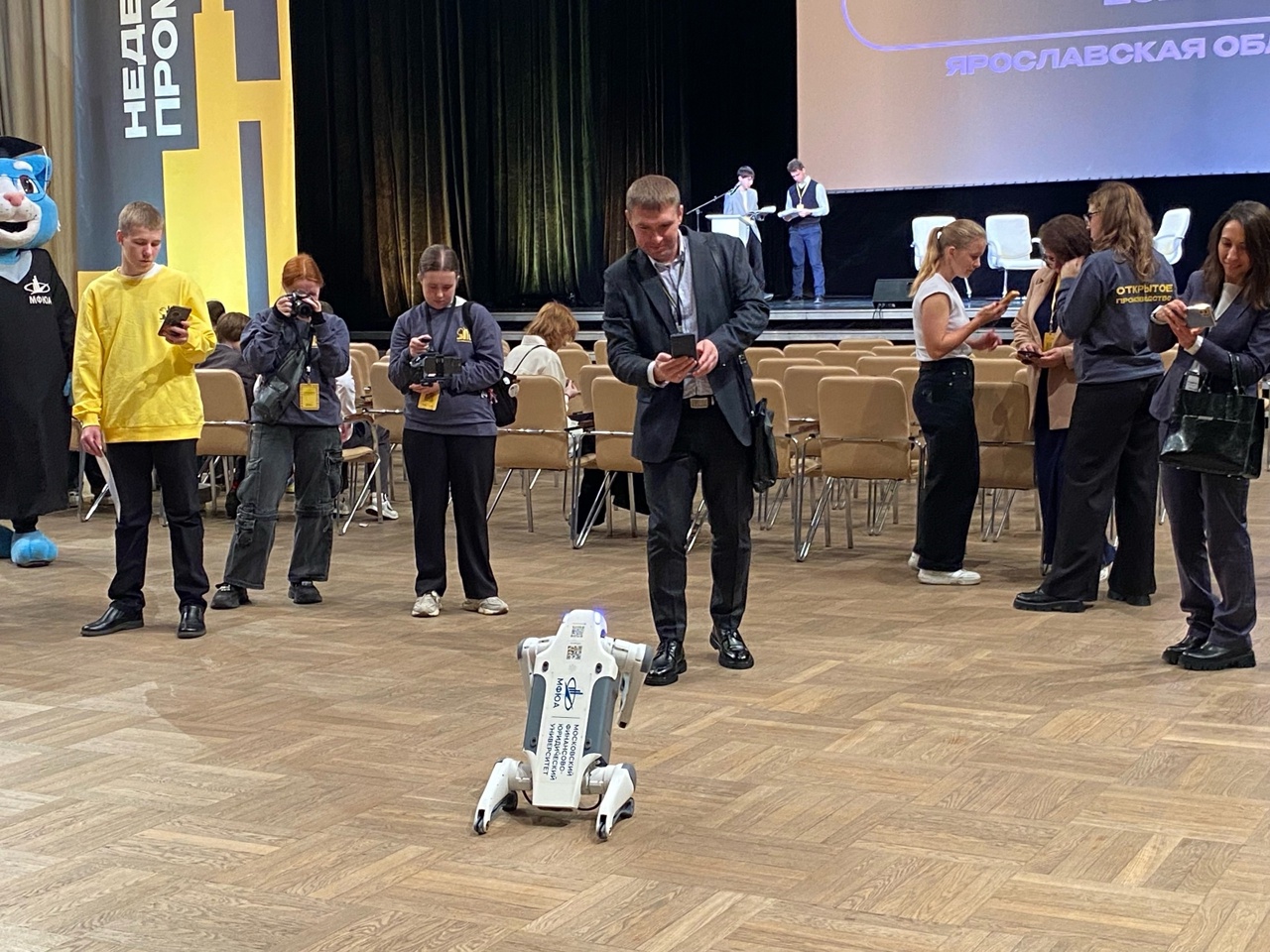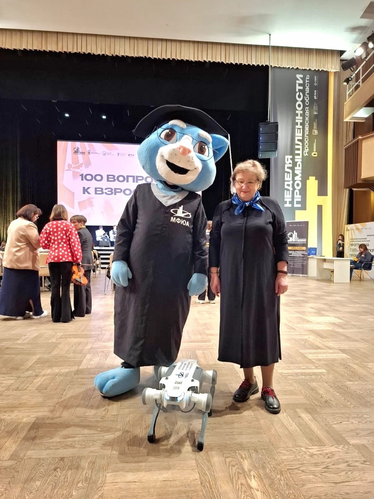 Наш "Кот Учёный" и робот "Ловкий Пёс", любимцы этой выставки, приводят к модулю Филиала