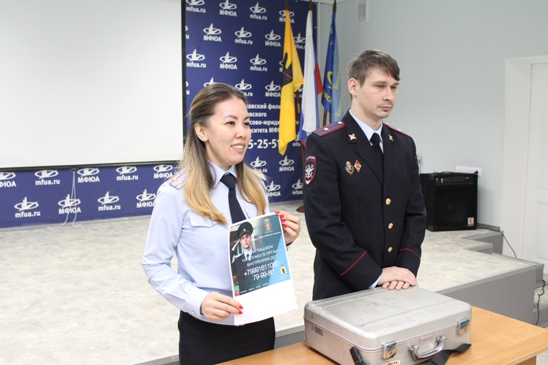 Заместитель начальника линейного управления – начальник отдела по работе с личным составом полковник полиции Сауле Уразалина рассказала будущим дипломированным специалистам о специфике прохождения службы в органах внутренних дел на транспорте, о социальных гарантиях, которыми обеспечиваются сотрудники полиции, а также о возможности прохождения практики в различных подразделениях линейного управления. Также руководитель продемонстрировала студентам наглядный материал о трудоустройстве на службу с указанием различных контактных данных.