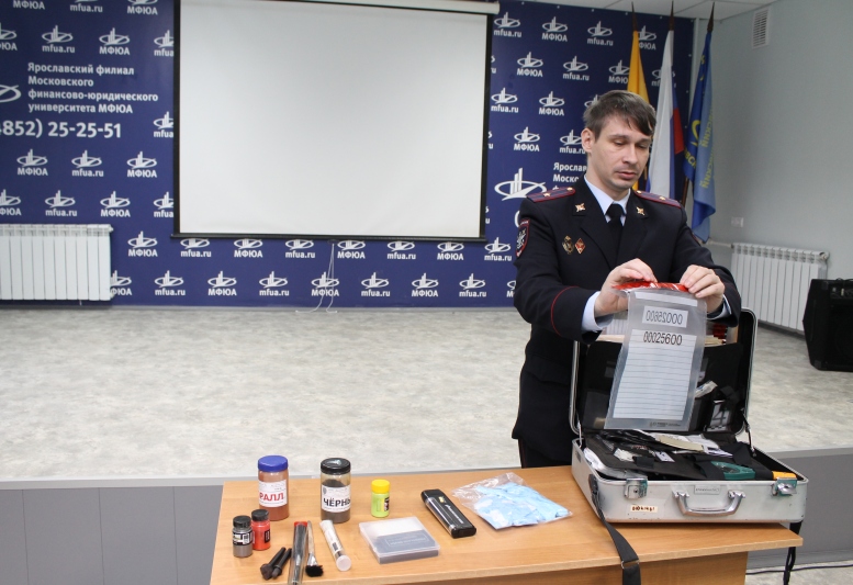 Заместитель начальника экспертно-криминалистического центра майор полиции Артем Осетьянов показал студентам ярославского вуза криминалистический чемодан и познакомил с его содержимым. Все желающие смогли поучаствовать в дактилоскопировании. Студенты и преподаватели смогли убедиться в том, что сегодня в транспортной полиции криминалистические экспертизы и исследования проводятся с применением современных технических разработок.