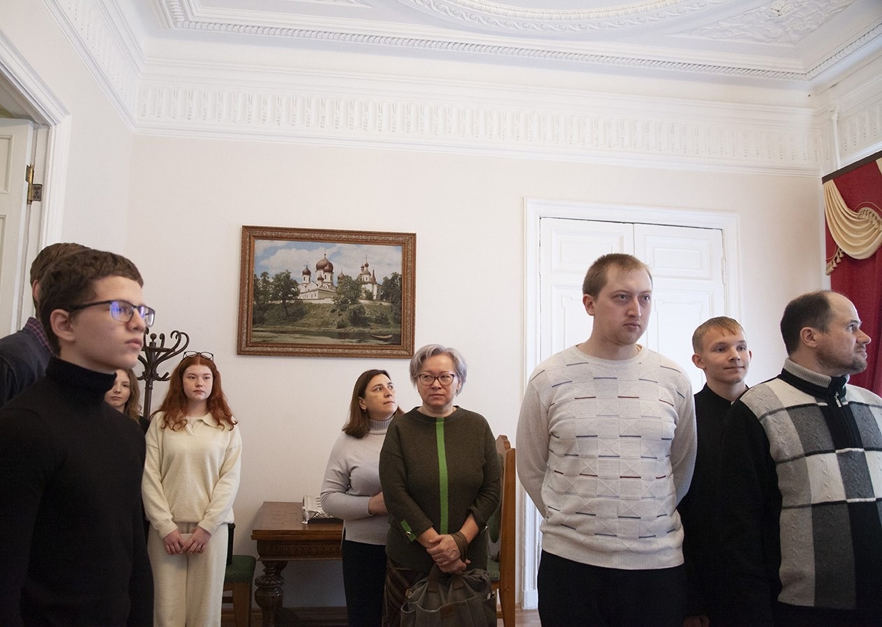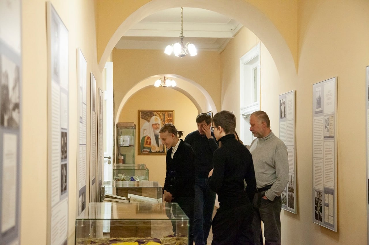 После чаепития студенты 4 курса семинарии Степаненко Михаил и Кислов Дмитрий вместе с преподавателем семинарии Олегом Васильевичем Губкиным провели для гостей экскурсию по аудиториям духовной школы и семинарскому храму.